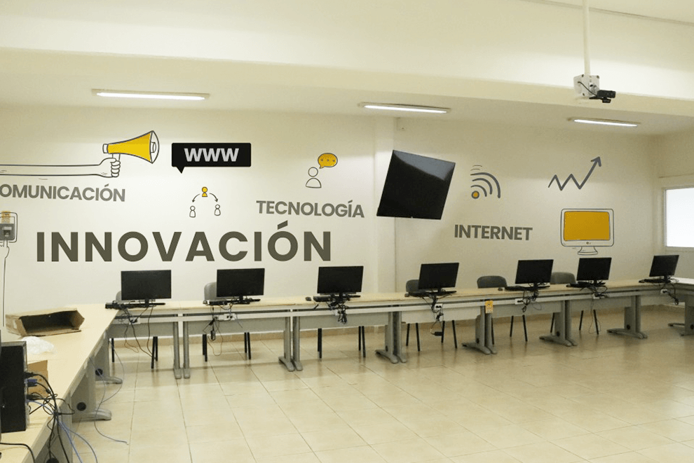 Nuestro campus también cuenta con salones y auditorios equipados con tecnología de punta, diseñados para albergar conferencias, seminarios y eventos académicos. Estos espacios amplios y modernos permiten una comunicación clara y eficiente en cualquier tipo de presentació